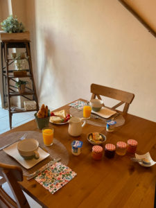Le matin, un copieux petit déjeuner sucré/salé vous est proposé dans la salle commune décorée d’anciens outils agricoles. Vous pourrez déguster des produits locaux et faits-maison.