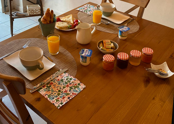 Le matin, un copieux petit déjeuner sucré/salé vous est proposé dans la salle commune décorée d’anciens outils agricoles. Vous pourrez déguster des produits locaux et faits-maison.