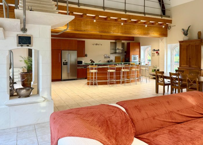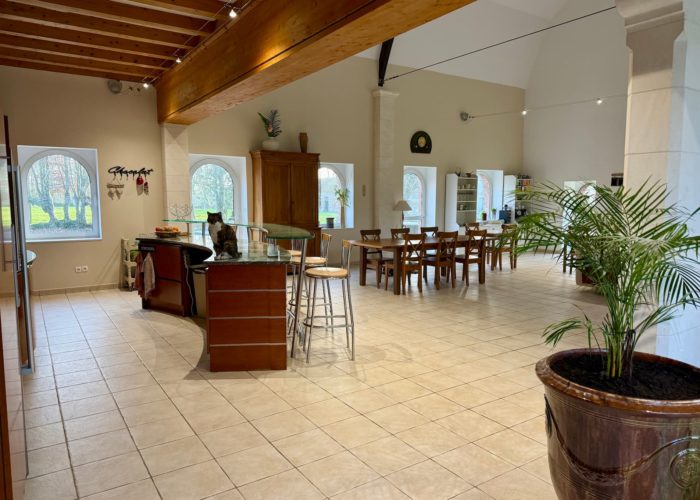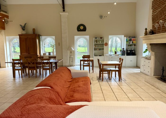 La configuration reste partagée avec les propriétaires qui possèdent leur espace privé à l’étage. L’ensemble du rez-de-chaussée est dédié aux hôtes.